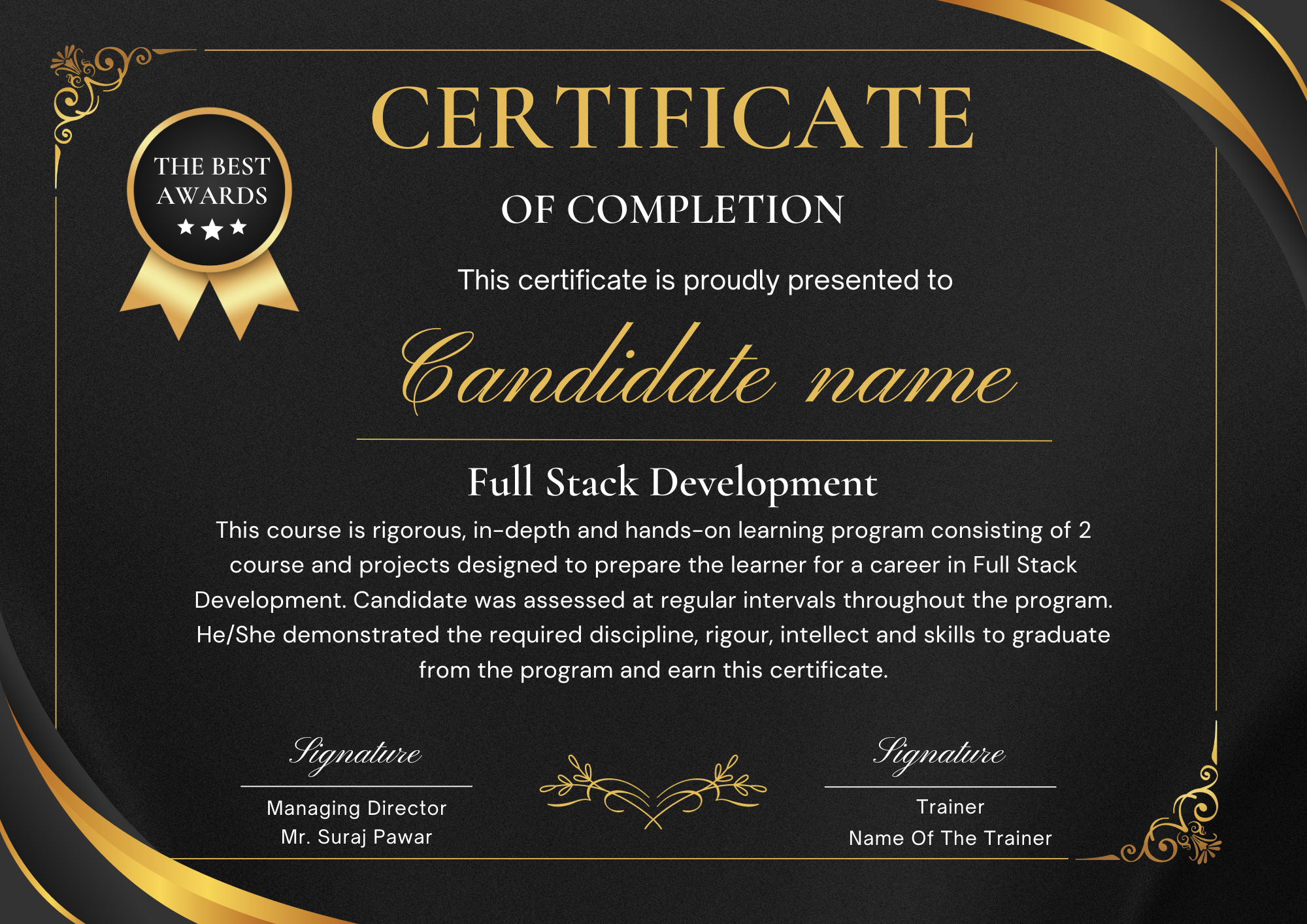 Upon successful completion of the program, you will receive a Full Stack Development Placement Guarantee Course certificate from LeadSoft Placement Academy.
