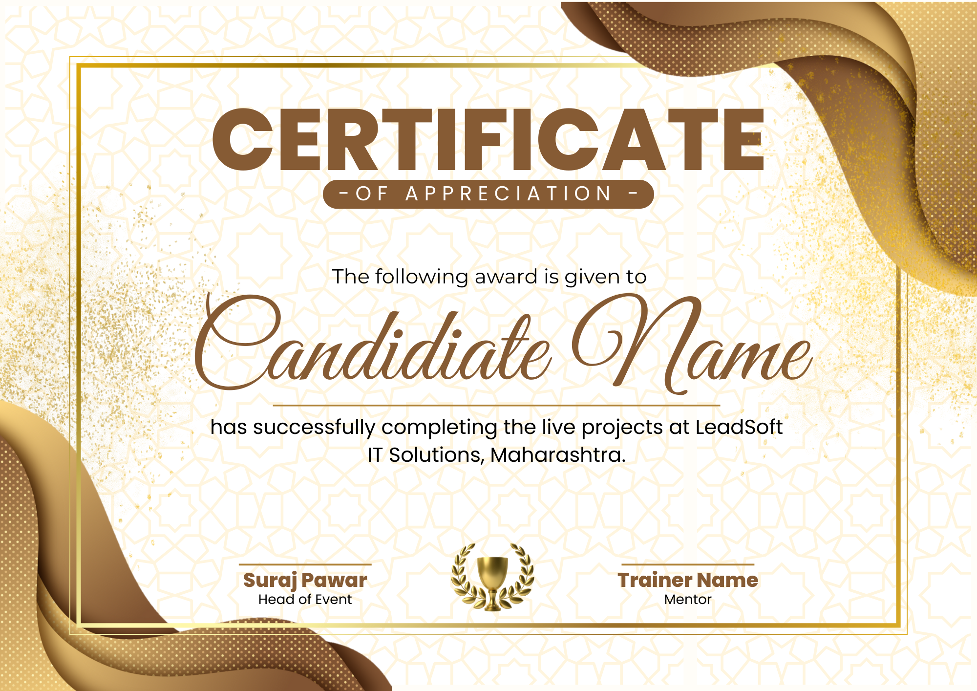 Upon successful completion of the live projects, you will receive a project completion certificate from LeadSoft Placement Academy.